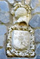 Escudo con las armas de los Sierra: castillo en llamas con un hombre armado con espada y con una antorcha en la mano derecha; el hombre está en la puerta del castillo y subido en una barca con tres remos. Estas mismas armas aparecen en los palacios de Jarceley y Llamas del Mouro.